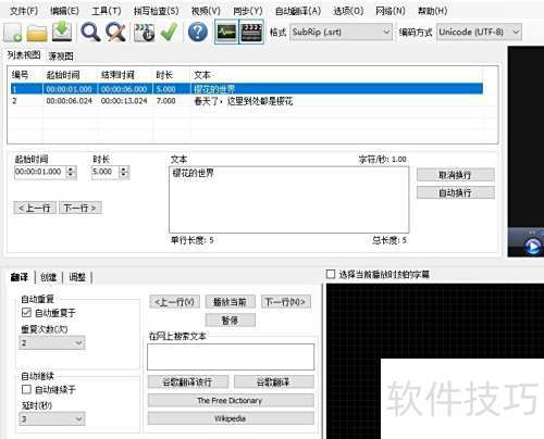 10、 使用字幕编辑软件制作所需内容,并导出为SRT格式的字幕文件。