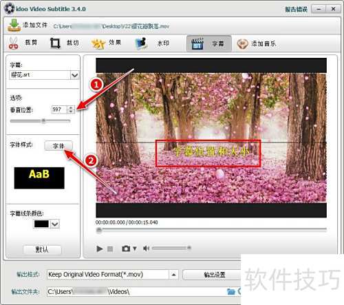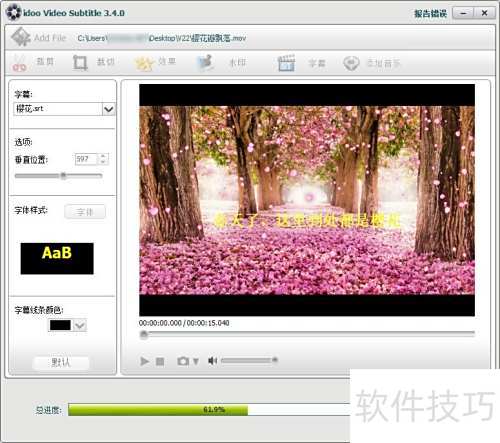 16、 通过调节垂直位置和字体样式参数,可自定义字幕的显示位置、字体大小与颜色,设置完成后点击开始按钮,即可生成带有字幕的视频内容。