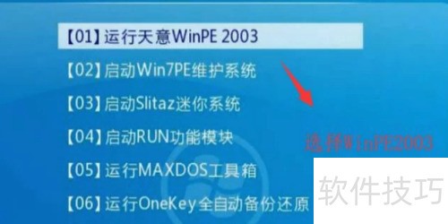 2、 随后将进入U盘启动菜单界面,所示,请选择WinPE 2003启动项。