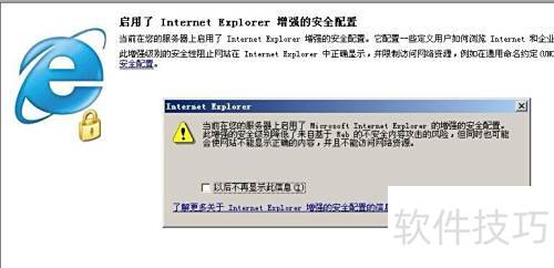 1、 Windows Server 2003默认开启安全增强功能,未加入白名单的网站访问时会持续弹出警告提示。