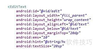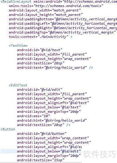 3、 接下来是编辑框部分,由于使用相对布局,需添加这两行代码来准确定位元素位置。