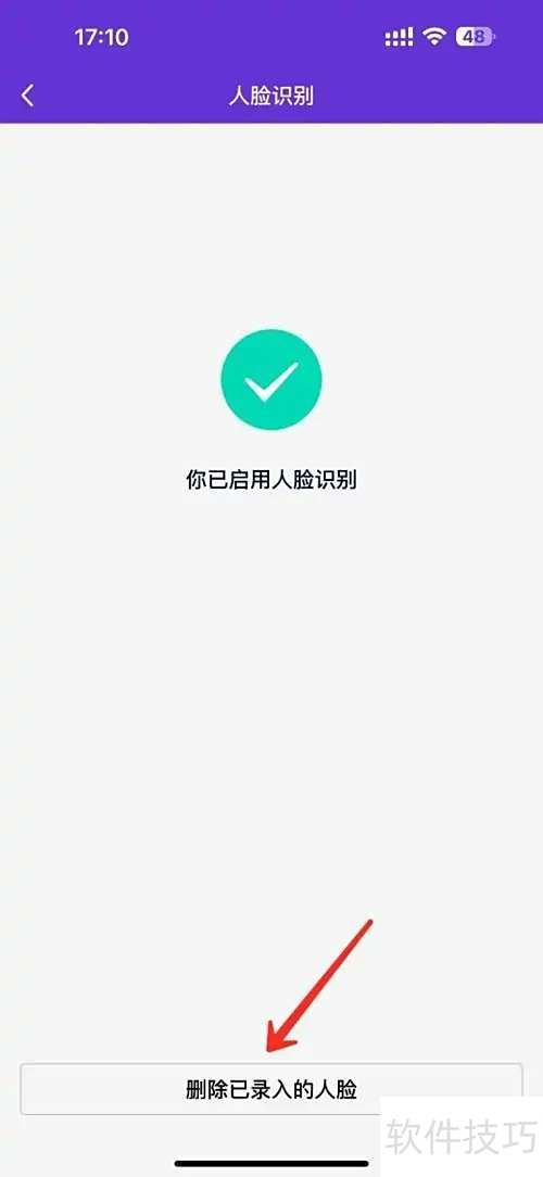 6、 进入淘宝人脸识别页面,选择删除已录入的面部信息。