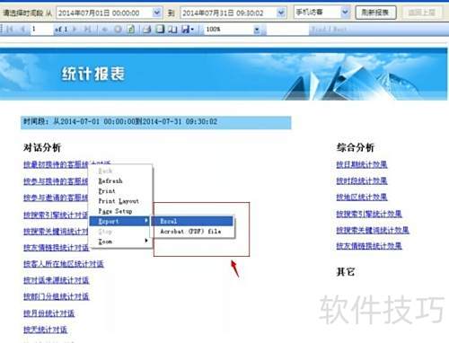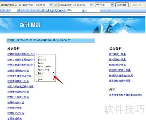 4、 选择所需报表类型,右键点击,从右侧弹出的菜单中选取导出选项即可完成操作。