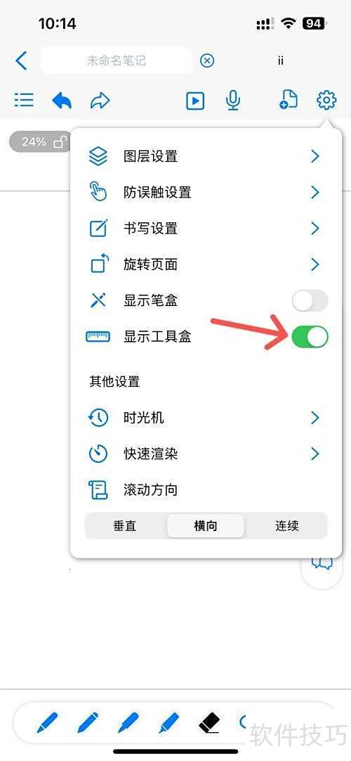 原迹笔记编辑界面工具盒显示设置方法,详细操作步骤请看下文说明。