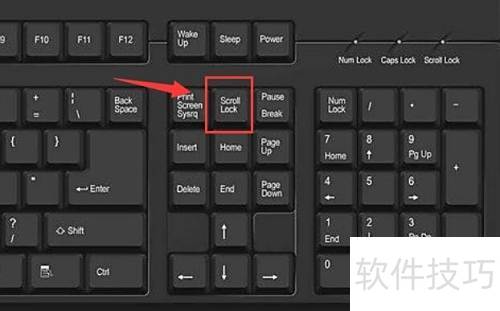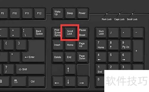 2、 台式电脑的Scroll Lock键通常位于右侧数字键盘的右上角,按下该键即可实现锁定或解锁功能,具体位置可参考图示。