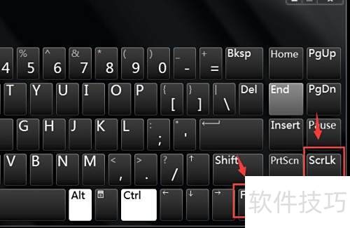 4、 笔记本电脑通常需同时按下Fn键和ScrLk键才能启用该功能,具体操作所示。