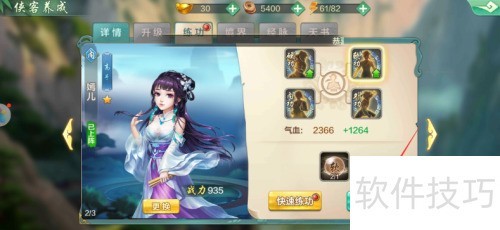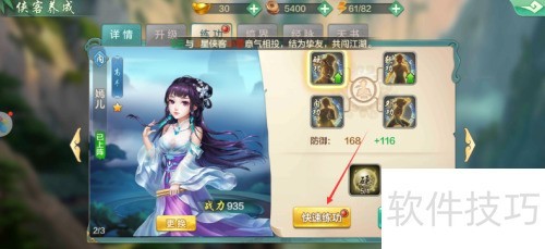 5、 选择可练功的侠客后,再点击其头像即可开始修炼。