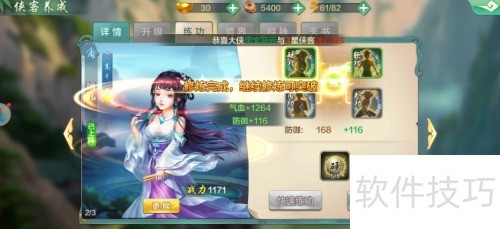 6、 每位侠客拥有四项武功,点击即可立即完成练功过程,操作简便高效,大幅提升培养效率,节省大量时间与精力。