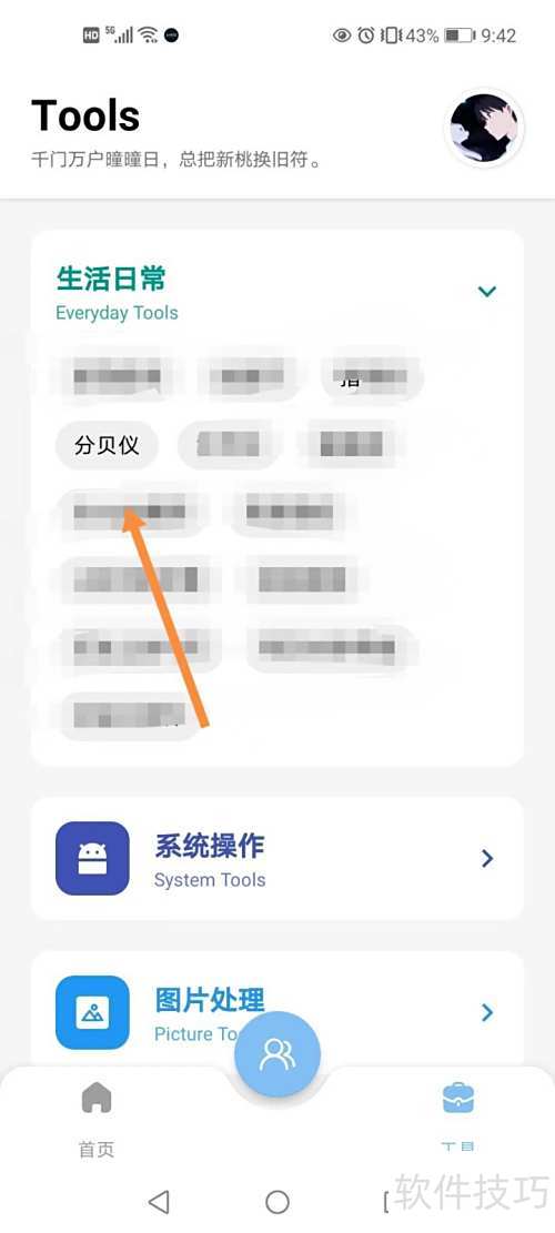 3、 第三步,进入工具页选择指南针选项。