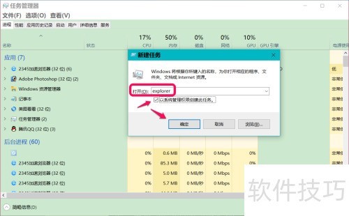 4、 重启Windows资源管理器以解决系统卡顿问题。