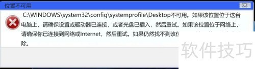 2、 C盘Windows系统目录下的配置文件桌面路径无法访问或不存在。