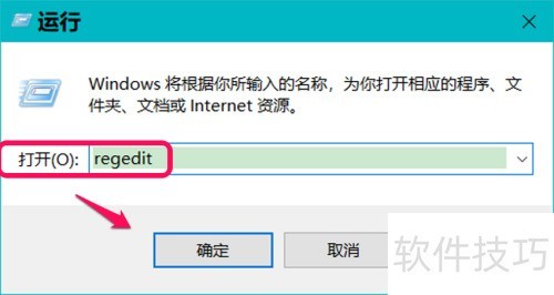 7、 在运行窗口输入 regedit,按回车键确认,即可启动注册表编辑器。