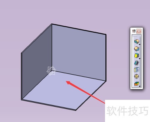 5、 选择三个面并移除后,确认操作,3所示,其余三个具有厚度的面将被保留,被移除的面不再显示。