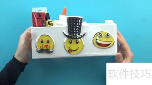 5、 将塑料装饰品贴满盒面,放入工具即可。
