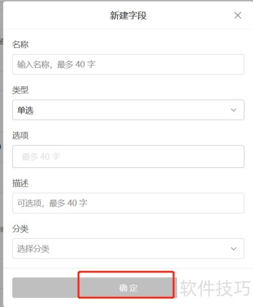 6、 填写好字段名称、选项内容及选择方式后,点击确定即可完成。
