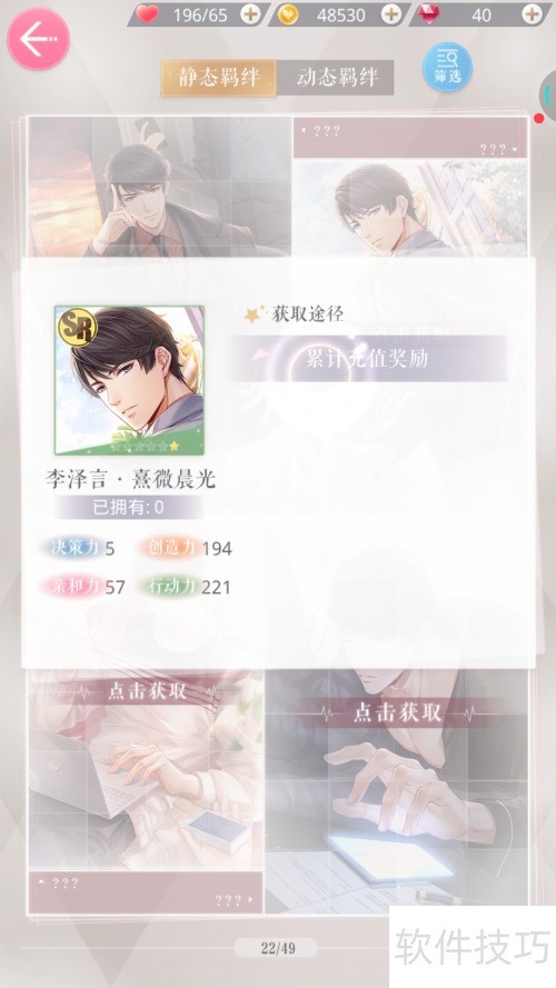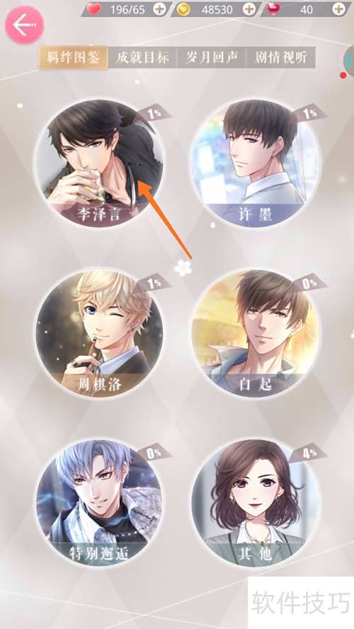2、 进入图鉴页面后,从羁绊列表中选择李泽言。