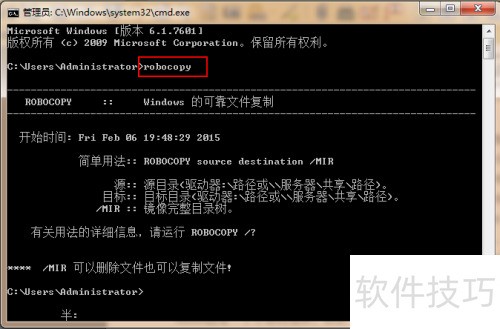 3、 在命令行中输入robocopy命令可查看其参数使用说明。