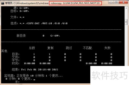 4、 可使用命令实现每10分钟自动将G盘VM文件夹备份至H盘同名文件夹。