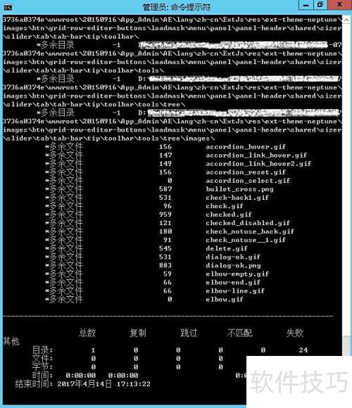 7、 在命令行中执行:robocopy test 20150916 /purge,实现文件同步并清除目标目录多余文件。