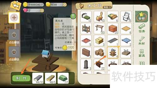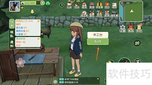 1、 进入小森生活游戏,前往自家门前的木工台,点击制作功能即可开始 crafting。