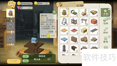 2、 进入木工台页面,选取晨光桌,点击左下角的制作按钮即可。