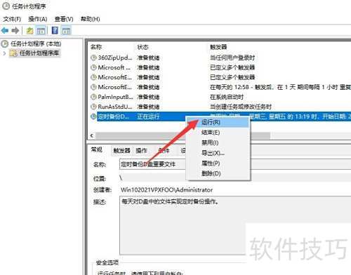 8、 创建任务计划后,只需右键点击该计划,选择启动即可立即执行该任务。
