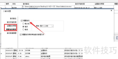 10、 根据实际需求,可选择全量或增量备份,此处选用增量备份,并可设定其备份周期频率。