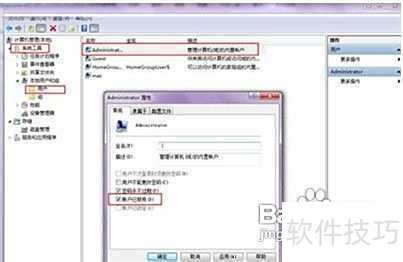 2、 第二步:点击Administrator并选择属性,在弹出的窗口中取消勾选帐户已禁用,最后关闭计算机管理界面即可完成操作。