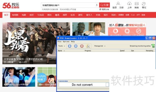 3、 先启动软件,然后打开任意国内视频网站,例如56网等。