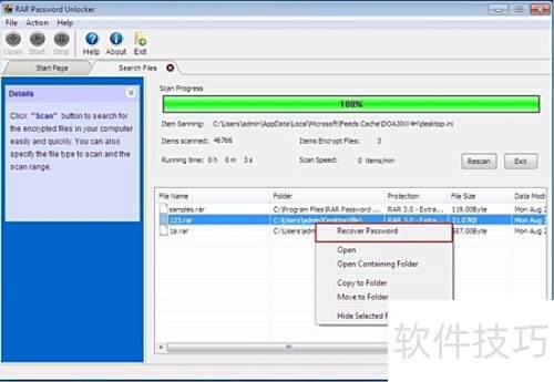 11、 当您忘记文件存放位置时,RAR密码解锁工具可扫描电脑中所有受密码保护的Excel文件,帮助您快速找到并解锁。
