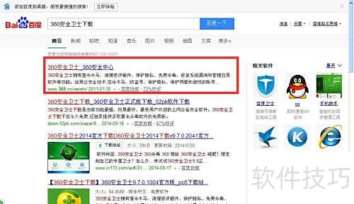 1、 打开浏览器,搜索360,在搜索结果中找到360安全卫士链接,点击第一个结果即可进入相关页面。