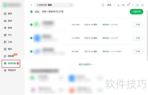 2、 查找软件更新项,红色数字显示可升级的软件数目。