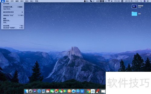 1、 进入电脑桌面后,点击左上角苹果标志。