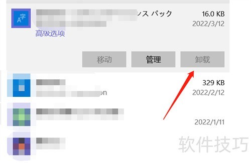 6、 应用名下方显示菜单,点击卸载即可移除该应用。