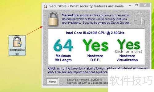4、 下载并运行securable.exe工具,通过该软件检测CPU是否具备虚拟化技术支持功能。