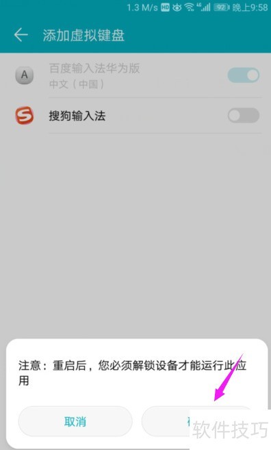 7、 重启手机后,当出现虚拟键盘界面,即可看到新添加的内容已成功生效,具体所示。