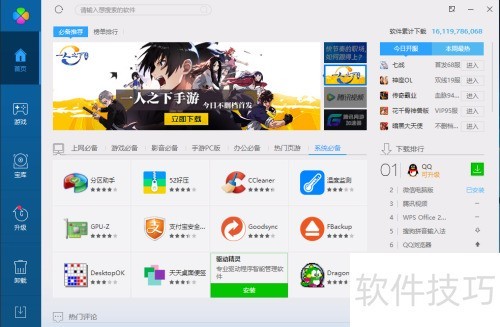 2、 在应用的边栏下载排行榜中,可快速查看常用软件,方便我们浏览并确认是否有所需应用。