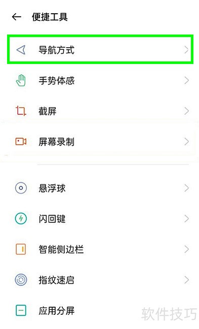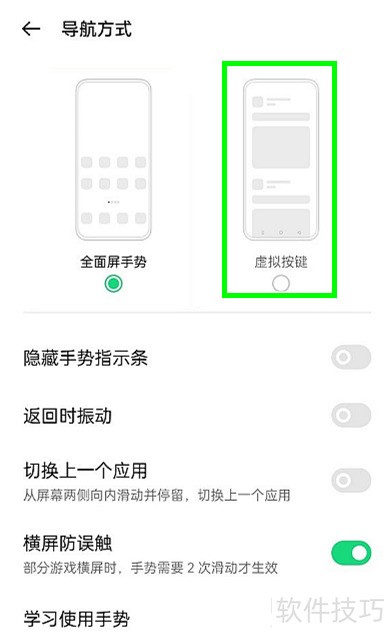 3、 进入导航方式页面,选中虚拟按键选项完成设置。