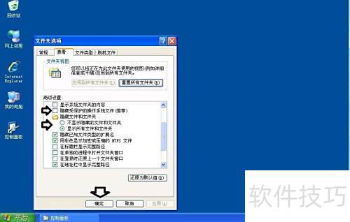 8、 该文件为隐藏的系统文件,若无法显示,可进入控制面板的文件夹选项,在查看标签中取消勾选隐藏受保护的操作系统文件(推荐),并选择显示所有文件和文件夹,最后点击确定即可正常查看。