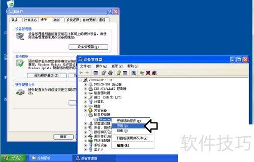 9、 在Windows XP系统中,可打开设备管理器,找到软盘控制器,右键选择禁用设备即可完成停用操作。