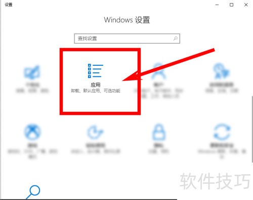 2、 打开Windows设置,进入应用选项进行配置。