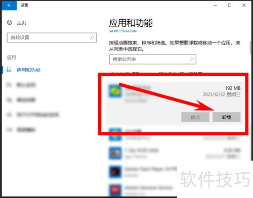3、 进入应用与功能,选中目标应用,点击卸载按钮完成操作。