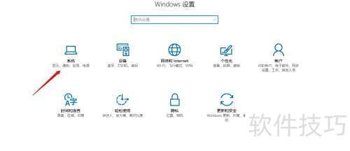 3、 打开设置进入Windows系统配置界面,查找系统选项。