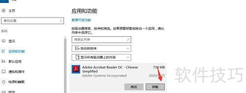 5、 进入应用与功能列表,选择要卸载的软件,点击后出现卸载选项,确认即可完成卸载操作。