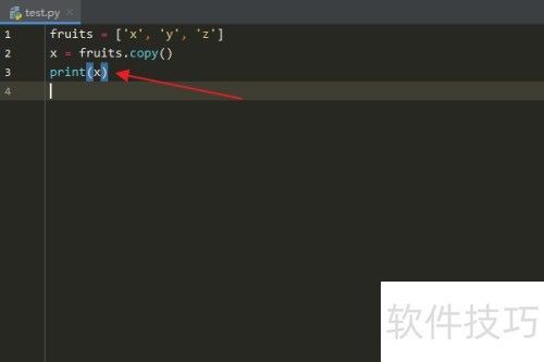 4、 输入x = fruits.copy()后按回车键继续执行。
