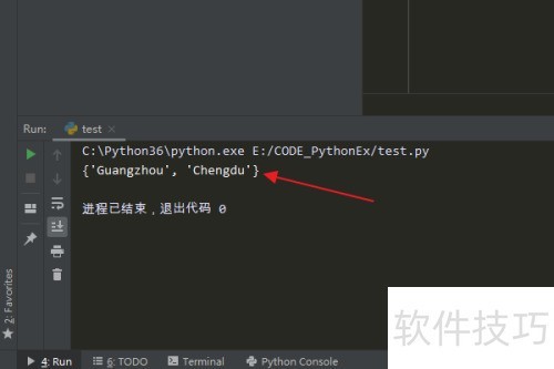 7、 在运行结果窗口中,已通过Python集合的copy()方法成功复制了mySet集合。