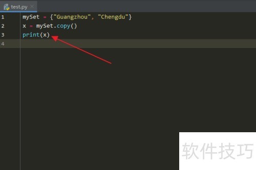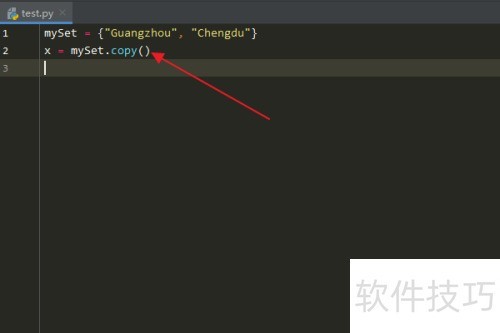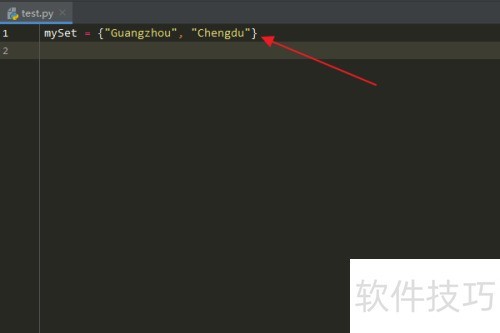 3、 在Python文件编辑区域,用大括号创建一个名为mySet的集合对象。