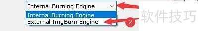 4、 随后点击选择按钮,在弹出的选项中选取所需引擎,例如选择External ImgBurn Engine。