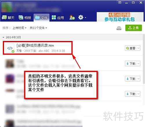 10、 使用社交软件如QQ时,常会收到陌生人发送的文件,或在群共享中看到带有诱惑性标题的文件,这类不明来源的文件切勿随意打开。特别是exe可执行程序,极有可能携带病毒。如今不少攻击者手段隐蔽,常通过发送htm网页文件诱导用户点击,进而下载恶意程序,导致电脑被植入木马或广告插件,造成信息泄露或系统异常。为保障设备安全与个人隐私,务必杜绝打开任何来源不明的文件,提高警惕,防范网络威胁。