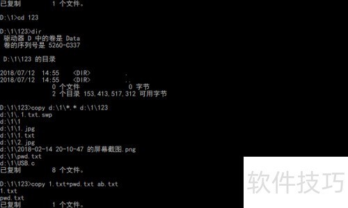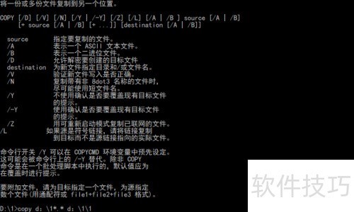 copy命令可用于复制一个或多个现有文件至指定位置,支持将多个文件合并为一个文件,也可用于创建批处理文件。